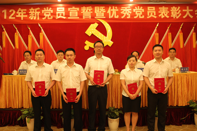 公司党委书记杨国平作重要讲话。他代表公司党委向获得优秀党员称号的同志表示祝贺,向刚刚加入到党的队伍中来的新党员表示热烈的欢迎。杨国平董事长就创先争优,进一步加强党组织建设,促进公司又好又快发展讲了三点意见:一是抓好创先争优,促进公司科学发展;二是加强党员自身建设,提升公司人才实力;三是加强党风廉政建设,树立党员的良好形象。要求全体党员以受到表彰的同志为榜样,坚持党的根本宗旨,坚持科学发展观,振奋精神,同心同德,真抓实干,开拓创新,以争创一流的精神状态和卓有成效的工作业绩来促进公司又好又快发展,为长株潭“两型社会”建设和湖南的发展贡献新的更多力量,以优异的业绩向党的十八大胜利召开献礼。
